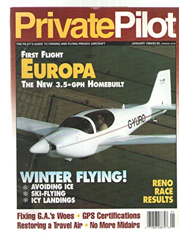Descriptions First Flight: Europa - The New 3.5-GPH Homebuilt / Winter Flying: Avoid Ice, Ski-flying, & Icy Landings / Fixing G.A.'s Woes / Restoring a Travel Air - (January 1994) (Private Pilot) DownloadPaperback/single issue magazine, as pictured .